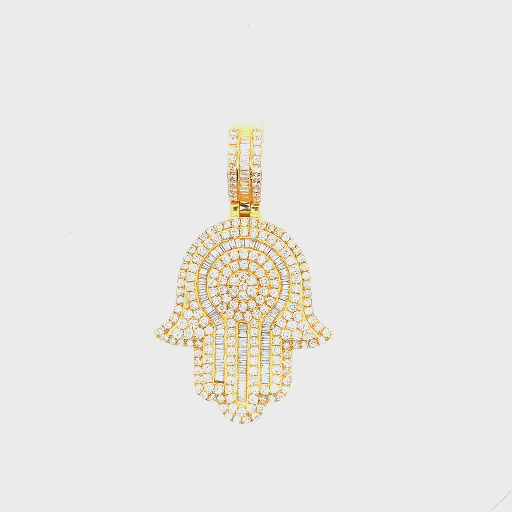 10k golf baguette and round diamond hamsa pendant with 5ct approx 21.5 gm