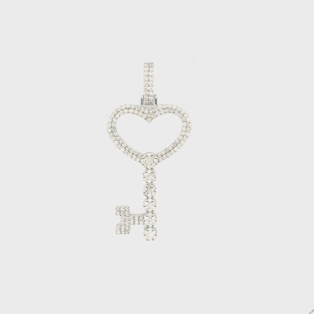 10K white gold heart key pendant with natural diamonds 2.2 ct and 7.7 gm of gold
